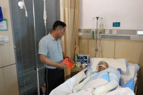 7月7日下午2時,公司副總經理、工會主席徐林同志前往市第一人民醫院親切看望因病住院的蔡正陽、因傷住院的劉彥榮,并分別向蔡正陽送上資助款2萬元,向劉彥榮送上資助款1萬元。其中蔡正陽系二次資助。
