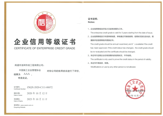 據了解,信用等級證書是市場準入、招標投標、評選評優等活動的重要參考依據。AAA級為施工企業信用評級四級八等中的最高級別。