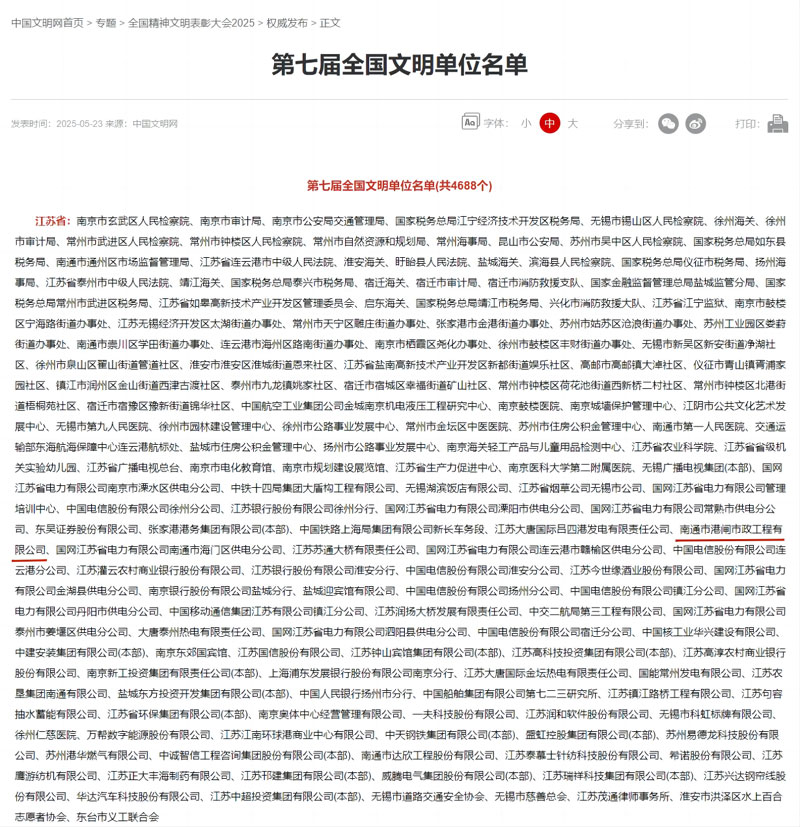 5月23日,中國文明網(wǎng)發(fā)布“中央宣傳思想文化工作領(lǐng)導(dǎo)小組關(guān)于認定命名第七屆全國文明城市、文明村鎮(zhèn)、文明單位和第三屆全國文明家庭、文明校園的決定”,我公司獲評全國文明單位榮譽稱號,該獎項是精神文明建設(shè)領(lǐng)域的最高榮譽。